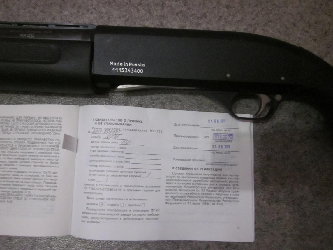 Продам МР-153 31.08.2011 г. выпуска, настрел ровно 5 патронов пристрелка по мишени, ствол 710мм, в пластике, в комплекте 3 дульных сужения, чехол. Цена 20 тыс руб торг. Оформление УЛРР г.Новокуйбышевска т.8-927 601 4227