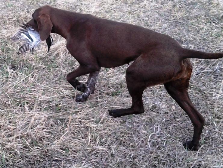 Отец РИДДИК, дата рождения 25.04.2016 г. ВПКОС 4840/17, РКФ 4851202, оценка экстерьера «Отлично». Рабочие дипломы: III – тетерев, III – фазан, I, II, III – водоплавающая дичь, III – в/кабан, III – в/барсук, II, III – кр. след. Многократный победитель в соревнованиях по Скиджорингу.