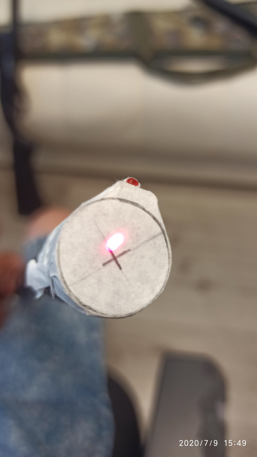 3. Далее смотрим, как показывает приобретенный ПХП. Крутим по кругу и надеемся, что в каком-то положении лазер совпадет с центром. У меня этого не случилось.