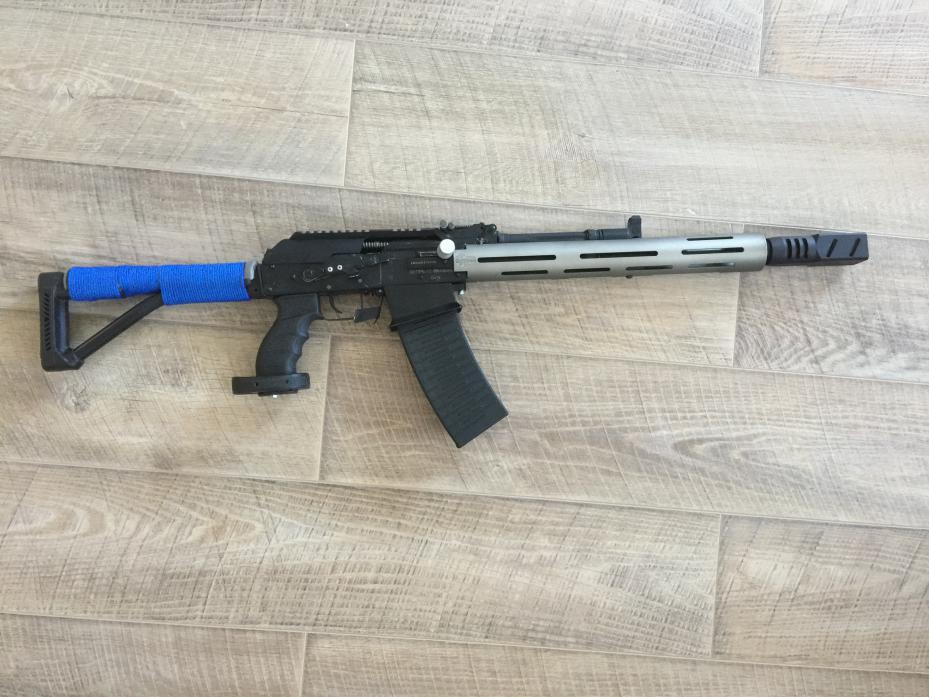 По порядку: приклад родной, переварин соосно ствола (убран угол), рукоять с пяткой (не помню фирму), быстрый сброс самый простой, горловина расширенная вепревская, вместо целика планка кочевник, калик китай открытый ( как не странно держит нормально), цевье хитфактор, удлинитель ствола 150 мм цилиндр, ДТК ГК3++.