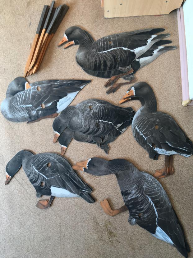 Принципиально новый, очень реалистичный, запатентованный комплект голографических 3D профилей белолобого гуся со светопоглощающим эффектом. В этой Pro Series устранена возможность отражения света, соответственно нет бликов. Текстурированная поверхность с обеих сторон, поглощающая солнечный свет дает возможность использовать данные приманки в солнечные дни или морозное утро (когда на профилях возможно образование инея) не боясь отпугнуть птицу. Самый реалистичный из всех аналогов рисунок, нанесен с обеих сторон на специальную текстурированную материю, наклеенную на морозостойкий пластик. Стойки - из водостойкой фанеры с пропиткой и естественной окраски. Профиля изготовлены в натуральную величину. Комплект создан исходя из оптимального сочетания поз: 6 кормящихся (3 позы по 2 шт.), 2 отдыхающих, 1 спящий и 2 сторожевых гуся. Профили гибкие, прочные и при этом комплект в упаковке весит всего 3,6 кг. Цена за комплект из 11 шт. 3850 рублей.