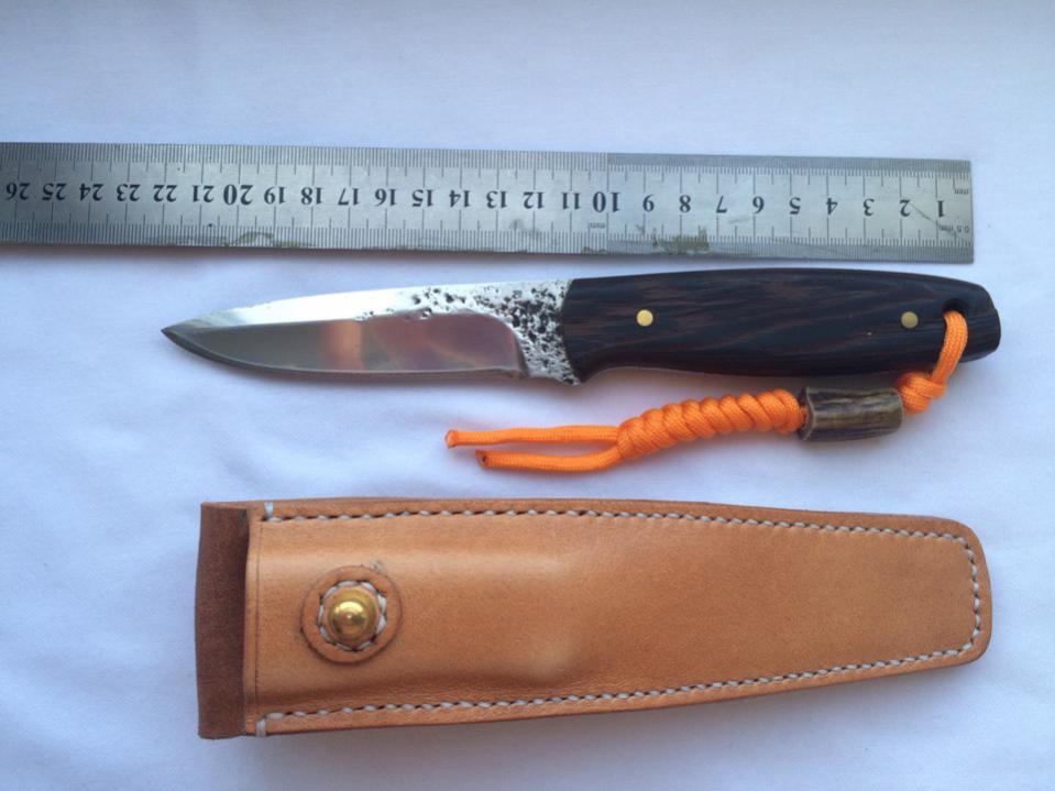 Нож изготовлен в кизляре,покупался за 3500,ножны шил на заказ за 2000,цена продажи 3000 +торг. Нож отличный,сразу после покупки был переточен у хорошего мастера под другой угол,для работы именно по мясу. Толщина обуха 3,5 мм,остальные габариты видно на фото,рукоять венге,ножны кожа растительного дубления,темляк 550 паракорд и рог косули,твердость по роквелу 62-64. Сталь отлично откована,из пробега,после переточки два крупных барана,от забоя до полной разборки туши,без какой либо подводки,нож остался в таком же рабочем состоянии. Очень резуч,в руке лежит очень удобно несмотря на небольшие размеры. Отличный компактный помощник для любых условий.