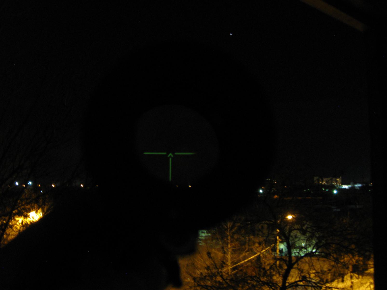 Для подсветки прицельной сетки в сумеречное время применяется источник света,включающий в себя светоэлемент, действие которого основано на эффекте испускания видимого излучения люминофора с тритием.
