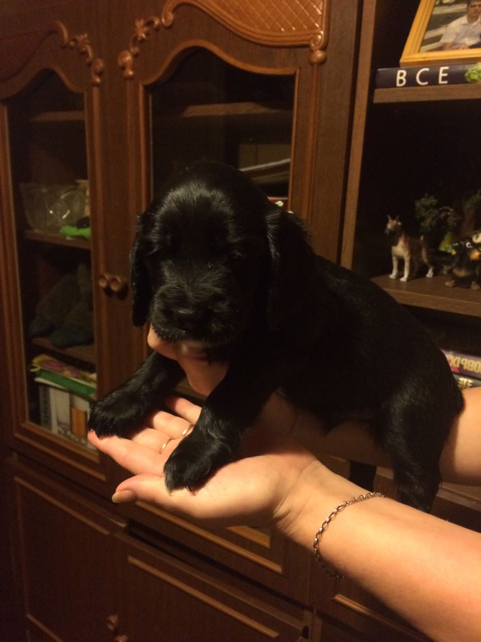 9 щенков: 6 кобелей (2 черно-пегих и 4 черных)/3 суки (черно-пегая и 2 черных)