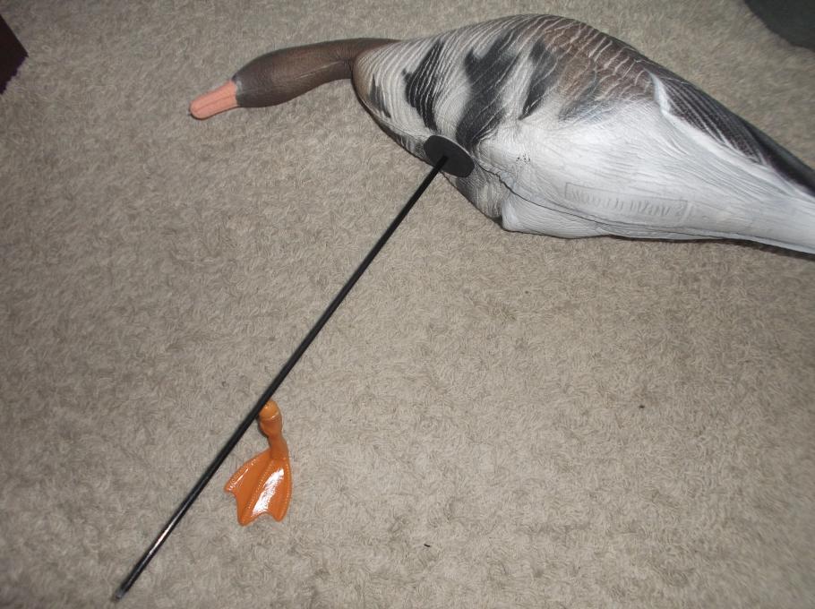 Оказывается и у меня как у ваших . Залез на сайт Нордвея и выяснил. Оказалось нужно самому насадить гусиную лапку на пластиковую стойку.И тогда лапа действительно торчит из груди гуся. А фальшместа для лап у пуза это для более дорогих моделей. Всё разобрались -это не брак.