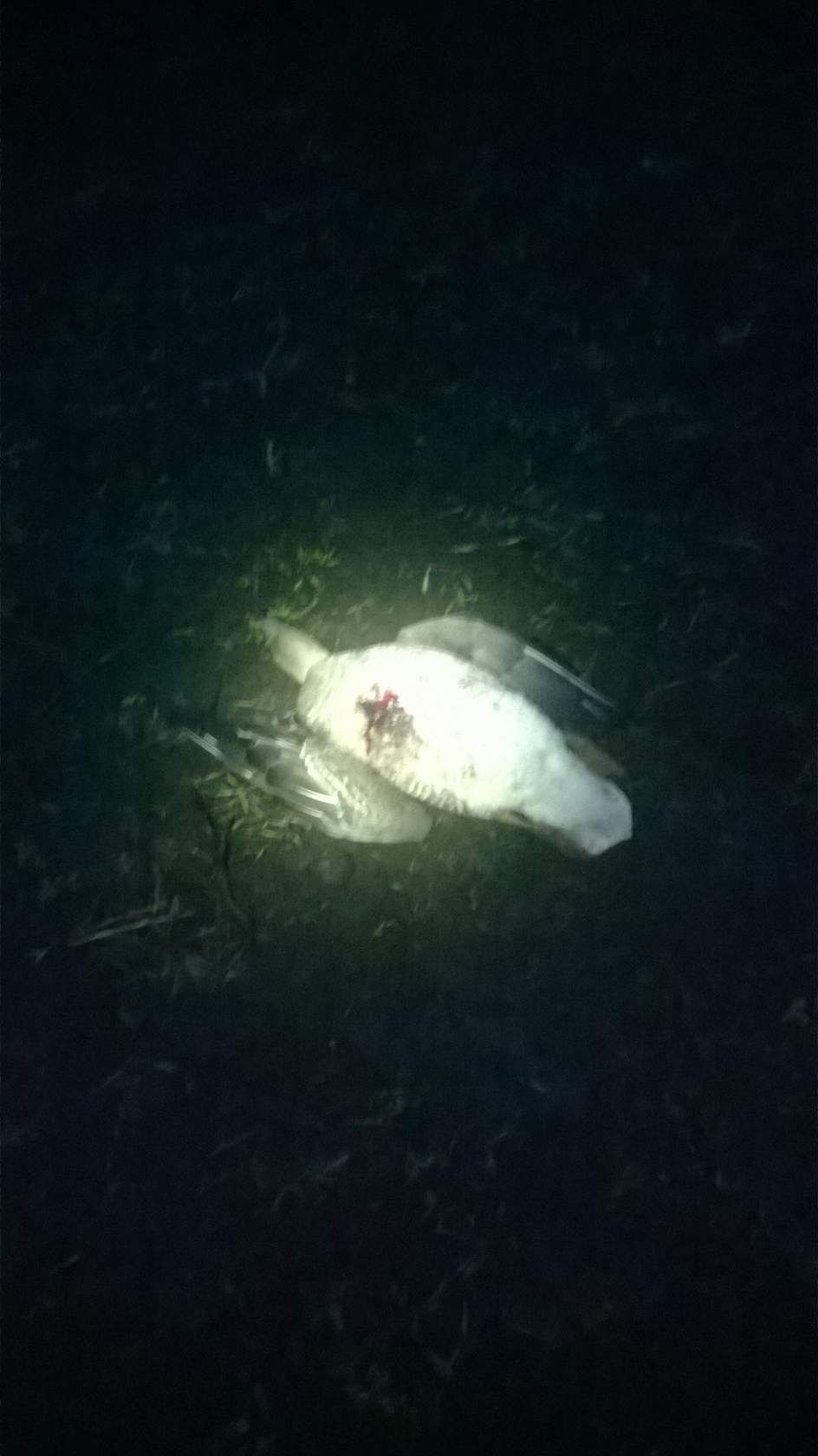 на фото четыре, после моего отъезда друзья нашли пятого подранка. вечерка тоже удалась, на фото мой и ребятки взяли двух. гусь старый, крупный |