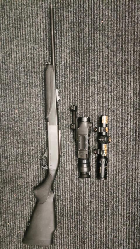 Remington 750 woodmaster, кал. 308 win. Использовался только на охоте и только томпаковой пулей. Мастером Охотомании установлена планка вивер Apel/. Произведен тюнинг газоотводного механизма, перезаряд 100%. Резьба 16/1. Впридачу интегральная банка. Надевается до половины на ствол, потом наворачивается. Перезаряд с банкой так же 100%. Теплоприцел Pulsar Trail xp 38 с быстросъемом и наглазником типа кошачий глаз, дополнительный АКБ увеличенной мощности на 12 часов (родной 8 часов). В комплект входит тренога с удержанием карабина в полном снаряжении. Цена комплекта 280 000 руб. По отдельности-карабин+банка 130 000, Теплоприцел 170 000. Торг после осмотра. Продает родственник, поэтому все вопросы по телефону 89379802694 Александр