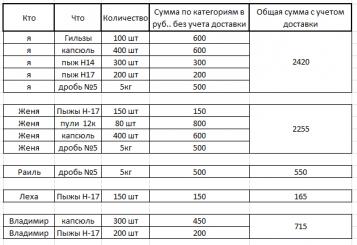 если где что не правильно, поправляейте.. 5кг дроби ещё надо раскидать как нить.... и 100 капсюлей.. Последний раз редактировалось Georg; 31.01.2011 в 14:32. |