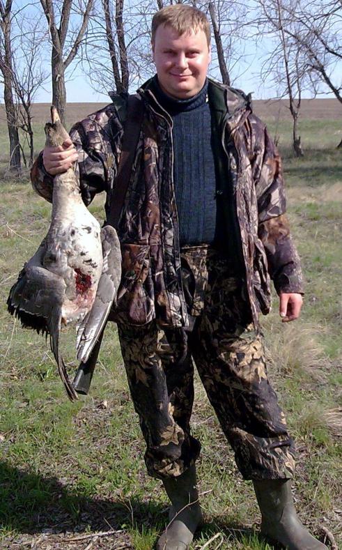 На закрытие опять поехали в Большеглушицкий р-н. Со второго захода гусь был взят. В 05.45. выбил в угон из стаи голов в 15.Налетели совсем бесшумно со спины. Отлично пролявил себя лежачий магазинный скрадок - маскировка идеальная, стоит таких денег.