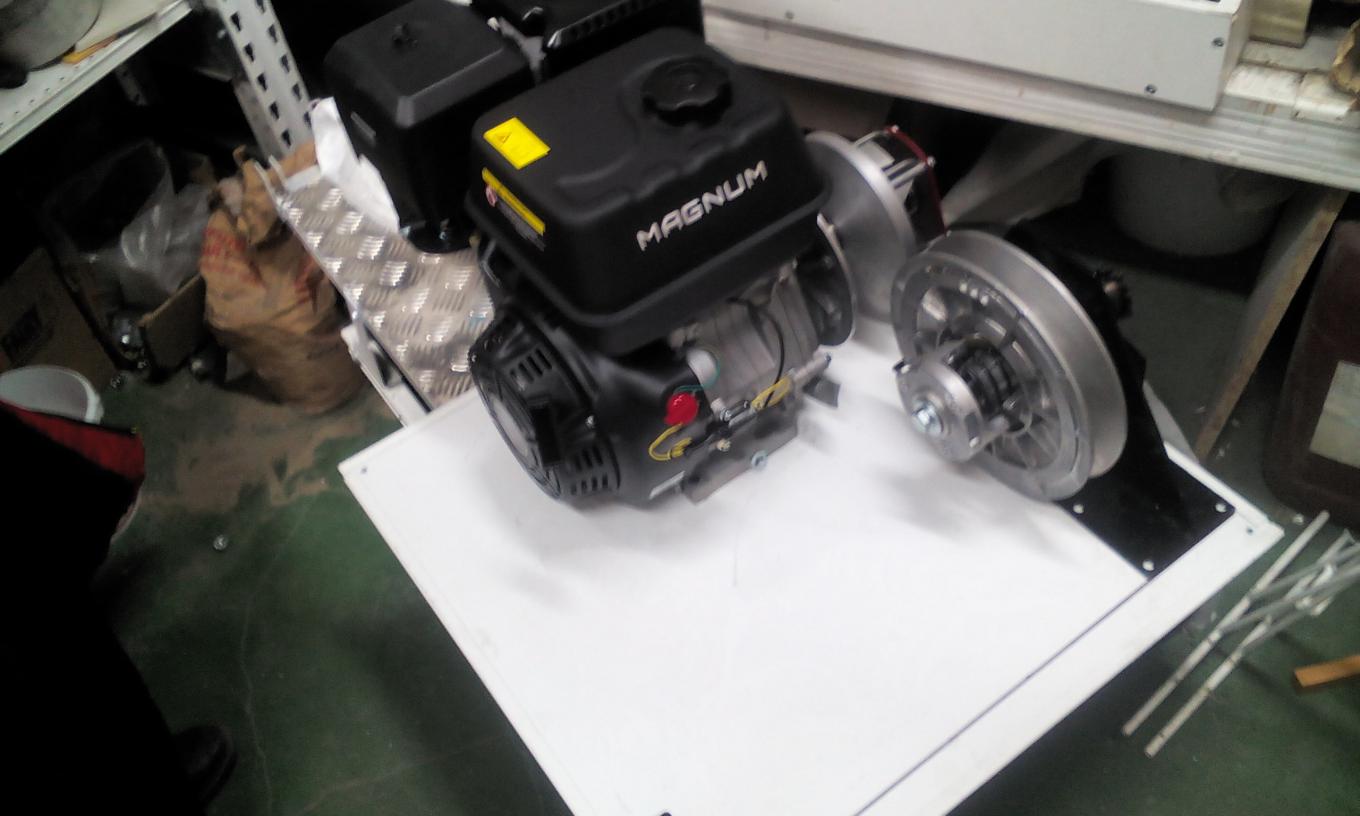 1. Гусеница для мотобуксировщика 2424х500мм, Мини - 6,7к 2. Вал ведомый(м), 500мм - 1,6к 3. Вал ведущий(м), 500мм - 1к 4. Тележка для гусеницы 500мм, пластиковые колеса, манжеты, 2 пружины, верхняя ось 520мм - 1,5к х 2 = 3к 5. Звездочка ведомая, 33 зуба, Минск - 0,7к 6. Цепь приводная, Минск-Восход - 0,4к 7. Шпонка 7х8 - 0,015к х 2 = 0,03к 8. Звездочка ведущая, 14 зубов - 0,4к 9. Двигатель Магнум 192F, 15л.с - 15,5к 10. Вариатор для 4хтактного двигателя 25,00 мм - 3,3к 11. Кронштейн ведомой трансмиссии в сборе - 4.7к 12. Ремень вариатора Рубена 33мм - 1,05к 13. Кнопка аварийной остановки - 0,25к 14. Ручка руля - 0,015к х 2 = 0,03к 15. Лист алюминиевый рифлёный, 1200 х 600 - 2,2к 16. Подшипник корпусной, UCP205 - 0,4 х 2 = 0,8к Итого по запчастям, купленным на настоящий момент: 41660 рублей. Ровно половина от цены аналогичной по характеристикам мотособаки в магазине. Из крупных затрат осталось только корыто (или два) и "газулька".
