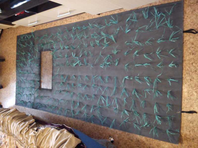 Всех с праздником!!!! Кто то спрашивал как на озимых маскироватся на гуся! ТЫК ВОТ отвечаю: берется изолон, красится под нужную вам почву (чернозём, глина, суглинок), берем лыко, подбираем колер под озимые и соответственно красим лыко! Делаем крючок из проволки для удобства протыкать изолон и вытягивать на обратную сторону лыко. берем небольшой пучок лыка длиной примерно 10см сгибаем пополам, протаскиваем через наше полотно из изолона и в месте сгиба фиксируем (я резал спичку на три части и фиксировал потом капельку клея титин)