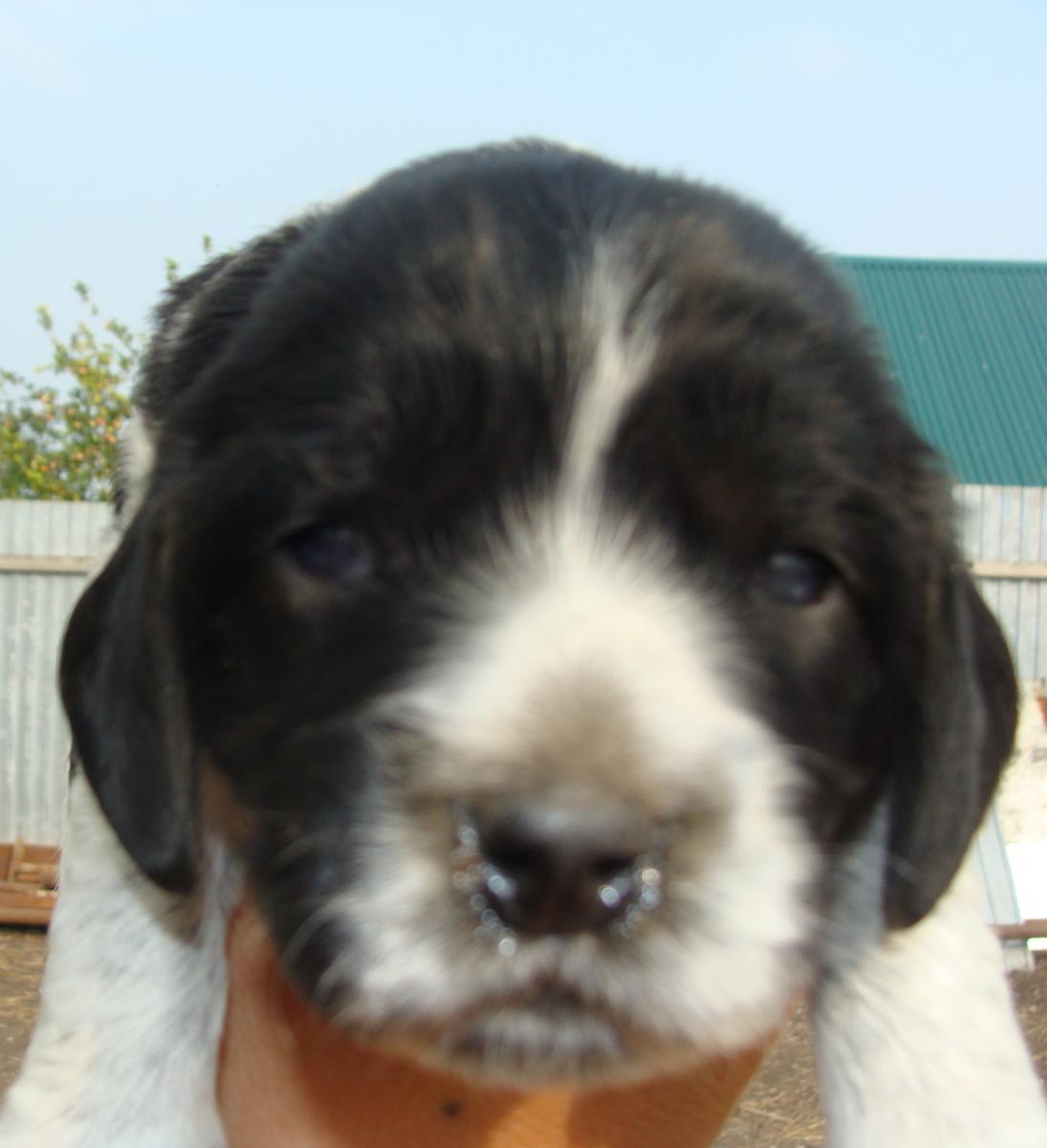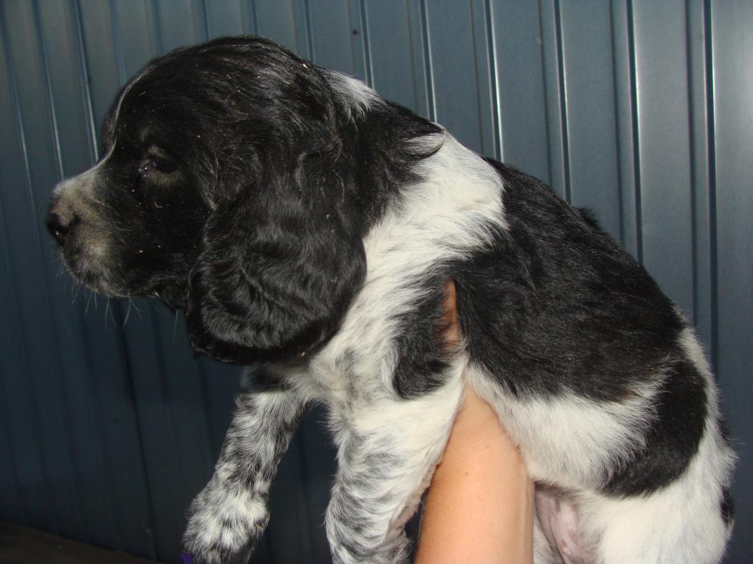 Щенки появились 12.07.2016 года. Два кобелька, одна сучка. Окрас у всех черно - пегий в крапе. В продаже к 12.08.2016 г., один кобель и одна сука.