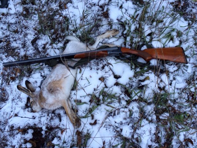 Взял вчера тоже зайчишку! Метров 150 было. Крупный собака)))