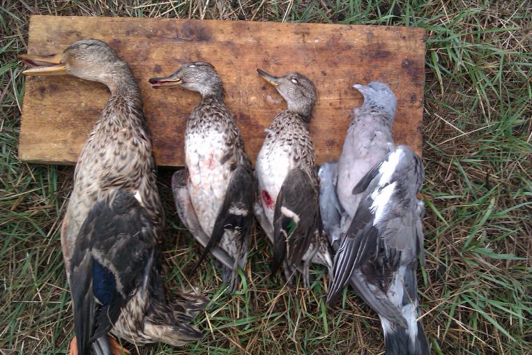 Качество стрельбы оставляет желать лучшего, скорее всего ветер усложнил ситуацию)))). Но вообще сама по себе стрельба по голубиным интересная. Теперь буду пробовать делать на них засидку, если не мигрирут до следующего раза. Вечернюю зарю в среду мне подрезали аборигены. Так что получилось взять только одного чирка. Но утренняя четверга порадовала. Взял пару чирков и крякаша.