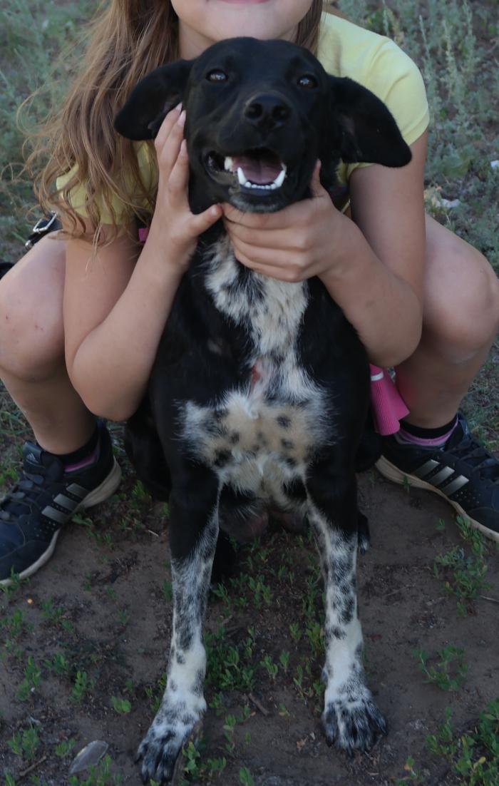 Девочка, 2 года, черная гладкошерстная с висячими ушами, в белых пятнистых гольфиках и с белым пятнистым галстуком, развивает огромную скорость, ловит голубей на лету, разрывает замешкавшихся кошек, ходит рядом без поводка и с поводком, отлично спит в машине на заднем сиденье, ест все. Собаку доставим. т 89276926612
