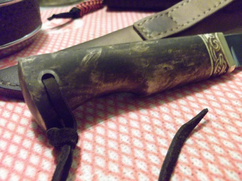 Ножны сшиты вручную (кожа-"фанера"), рукоять-березовый кап,гарда-латунь,рог лося,темляк.Заточка-бритва.Нож разработан,изготовлен и собран Романом Серковым ("мастерская Романа Серкова" г.Самара). Вашему вниманию....тот маленький клин...и воот он результат...ручная работа Романа Серкова...