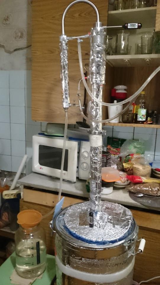 Преимущество мешка только в дешевизне и возможности обходиться без второй емкости. Это вариант для желающих попробовать, а надо ли оно им?! У меня в качестве куба как раз молочная фляга на 25л. Уплотнение крышки силиконовое, сделал сам залив полость для прокладки пищевым силиконом. Соединение на выходе для дистилятора резьбовое 1" из Ашана. Важно только, чтобы крышка фляги была плоская. Такая у фляг со складными ручками. Планируемый вами дистилятор в силу своей конструкции хорошего результата не даст, получите душистый сивушный напиток. Рекомендую обратить внимание на так называемую пленочную колонну, с дефлегматором и большой царгой. Я такое сделал сам из водопроводных медных труб и соответствующих фитингов, себестоимость около 1,5т.р. Флягу купил на Авито у бабушки за 500р. Общая себестоимость аппарата с кубом, с учетом термометров и шлангов около 3,5т.р. Эстетически может не идеально, но соотношение цена аппарата/результат очень на высоте. И проблема переработки неудавшегося пива решена. |