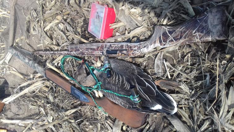 Внесу свои 5 копеек. Заезд в угодья в пятницу, осмотрелись гусь есть. На мягкой земле вокруг снежницы всё вытоптано и обсёрото гусем. С вечера готовим скрадок.расставляем чучела и профили, отмечаем без фанатизма встречу и спать, но сон не идет, все мысли об охоте, как то будет завтра. А завтра было не очень, налеты были, но гусь отворачивал не долетая нас, а редкие выстрелы на предельной дистанции результата не приносили. думали, анализировал и решили углубиться в землю, но и это не помогло, к тому же случилось самое обидное, выбитый из стаи гусь утянул в высокую траву и долгие, азартные поиски закончились ничем. В воскресенье после утрянки едем по домам, день на отдых и в понедельник заезжаю снова. Друга не отпускает работа. иду на гуся в одиночку. Меняю место дислокации, встаю на вспаханной пшенице возле снежницы. Гусь пока есть, но меньше чем на открытии. Вечер понедельника и утро вторника выматывает всю душу, гусь идёт. но за 100-150 метров уходит в сторону. На поле условия не тепличные, лежу в старой лодке накрытый маск сетью. Днём забираю желто- черную маса сеть с собой и безжалостно купаю её в грязи втаптывая сапогами в самую жижу. До вечера сеть высыхает и о чудо я сливаюсь с местностью не смотря на то что лодку не прикапывал. Гусь не шарахаеться, а смело подходит на выстрел. Бью, вижу вывалившегося из стаи гуся и его полет на бреющем метров на 250. Бегу, благо пашню немного проветрило, и... на месте падения гуся НЕТ. Слева и справа вода, на ней видно далеко, но никого нет, навстречу мне он побежать не мог, значит только вперёд. Метров через 200 я его увидел, гусь бежит к краю поля в высокую траву. Когда я его догнал до травы оставалось метров 20. Ура первый трофей есть. Путь назад с птицей в руках прошел на подЪеме настроения, несмотря на семь потов. Больше в этот вечер ничего не случилось, гусь тянул слабо и далеко. Сегодняшнее утро задалось с самого начала. Пришел на место по темноте, только устроился с соседней снежницы поднялось голов 200 гуся. Большая стая сразу раскололась на мелкие и гусь начал метаться по полю во всех направлениях. Налетели 3 штуки, одного выбиваю и опять вижу бреющий полёт ( сцука ) на другую сторону снежницы. Переправа в 200-250 матров занала минут 30. Засасывает по самые бубенцы, но на той стороне лежит гусь, не очень бодрый но и не мертвый. Сердце хочет выпрыгнуть, пот залил глаза, пока вытыщишь одну ногу другая ушла в землю. но там лежит ГУСЬ. Дошел, забрал, сил нет, но путь назад с гусем в руках прошел вроде легче. Потом сборы, поход до машины с двумя рюкзаками, сумкой ружьём и гусем. И вот наконец я дома и делюсь радостью с такими же бедолагами как я. Сил нет, всё болит но как это классно. Сейчас попробую добавить фото первого гуся, фоткать второго небыло смысла и если честно сил.
