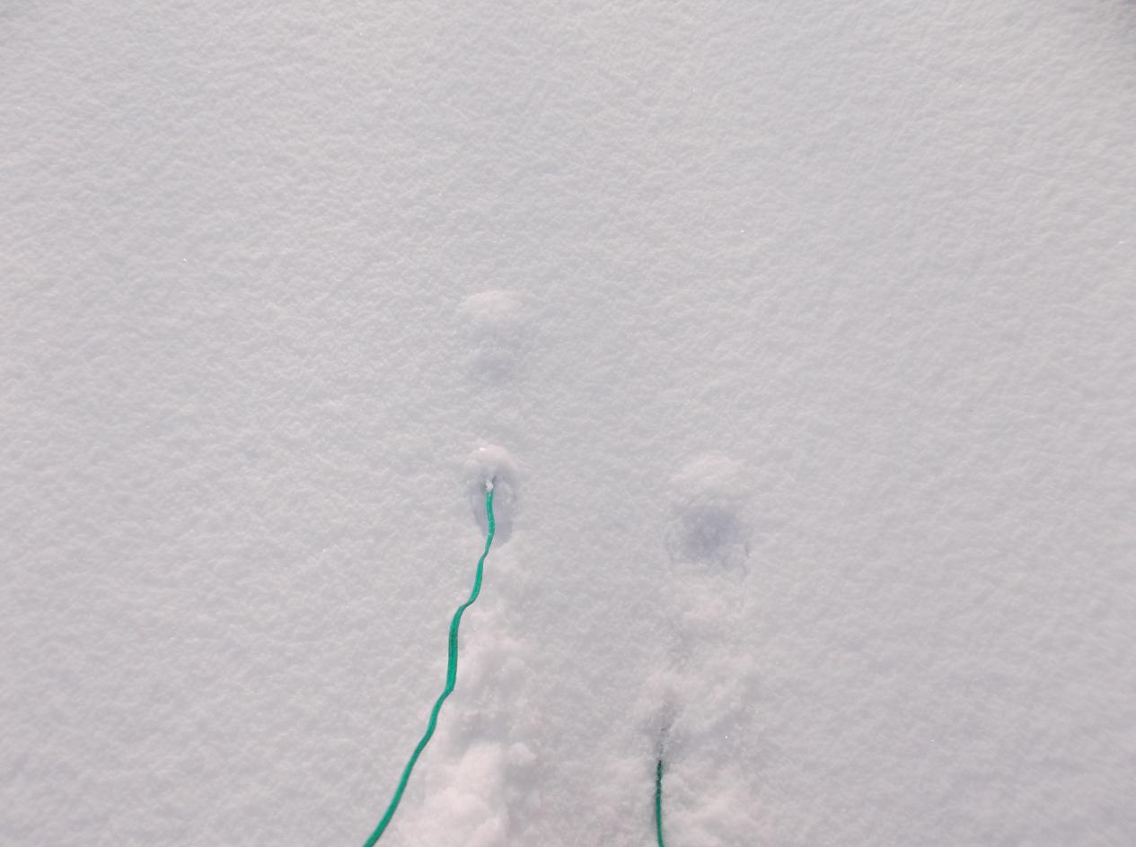 Следов было много, правда только лисьих и мышиных, ни одного зяичьего следа так и не нашел. То ли заяц не вставал, то ли обиделся косой и ушел в другие места. По дороге нашел нору лисы, звал ее с собой, не вышла. Или гуляла или в гости к кому ушла. Снег в поле есть, наст на лыжах держит, без лыж провалился выше колен - экспериментировал.