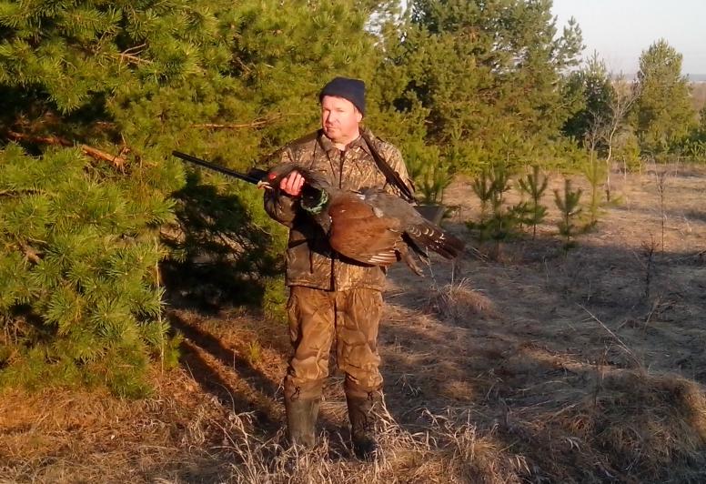 Пришли с егерем на ток,а ток-то вырубили.Рубят все подряд!И не очищают и не сажают новый лес.Но все-же хоть ток и сместился,все же нашли его.Сначала пел один петух.Затем еще присоединились4 или 5. Удалос подойти на выстрел,хотя подходил открытым местом(вырубкой) и светло уже было.Но удача была со мной.Всех с полем!