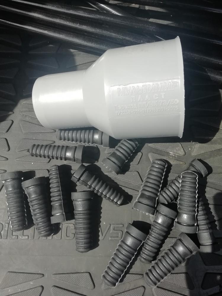 По роликам и сайтам сего творчества мне совершенно не нравилась идея с заглушкой 110-ой и переходом таким же. Громоздкая конструкция в итоге получалась. И вот, придя в леруа я начал искать) Нашел переход с ПП на чугун 50х73. 73 уже не 110) Диаметр максимально подходил на магазинные приблуды за 2к. С заглушкой сложнее. 40 мала, 50 не заходит, т.к. такого же диаметра. Решено было взять 40-ю и там уже сумничать) Сумничал - закатал изолентой и вбил в трубу. Очень крепко сидит. Как проверю и если не люфтит, то так оставлю. Нет, так отцентрую и саморезами малюхонькими закреплю. "Пальцы" взял за 300р комплект. В мирохоте как раз скидка очередная 20% была (Попутно кепоном разжился, грузилами на чучела и посудой). Пальцы именно на утку взял. Были еще на домашнюю дичь, но они подлиннее. Решил на утку самое то Теперь их как-то надо вставить. Думал они круглые, ан нет - овальные. Думаю штангеном замерить минимальный диаметр, а дальше напильником до овала довести. Надежда на рабочую весчь большая