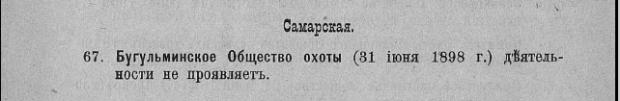 И в ней же указано что Бугульминское общество (1898), чей устав я нашел, "дъятельности не проявляетъ". На тот момент, Бугульминский уезд был в составе Самарской губернии. Можно хотя бы от него отталкиваться.