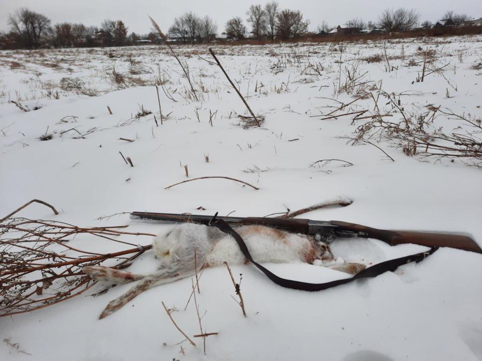 Это была трудовая охота! Снег посыпал нашу "ковидную" землю два дня подряд лёгким снежком. В одном месте не истово зудело. Внутренний голос говорил пора Вася твой выход... ружья поскрипывали и вздыхали на кануне, лязгали о стенки сейфа как кони стуча копытами, когда мои руки тянулись не к ним, а карабину. И вот долгожданная пороша, ветра с утра нет, тишина немного мело, но это пустяк. Чуйка говорила зайцы будут бегать под утро след будет свеж и печать его четка. Выйдя за околицу понял пороша была до утра, но лисий след чуть присыпаный выдавал что утренний 5 часовой обход гусятника ее попадал на завершающую фазу жировки зайца, и след если и попадется, то точно ведущий на лежку. Все мои думы по этому поводу незаметно привели меня к равномерной строчке заячьего следа которая шла по луговине по следу трактора. Скидка была рядом, прыжок в лево и сдвойка прыжок в право петля метров 60 и скидка в плотно заросшие кусты лебеды, крапивы и амброзии. Подойдя к талой лежке. Было понятно, что дело иметь придется с профессором, который уже не раз обводил меня как щенка в прошлом году. Так как заяц встал от шума или от подозрения об опасности, меня он не видел судя по всему. Он пробежал по дороге метров 150 на развилке с дрифтом заднего моста вписался в поворот на дорогу идущую в право и ровной строчкой повел меня в перед. Заяц сделал петлю метров пятьдесят, прыгнул в лево, ещё петля, прыжок в право...по топтался на куче строительного мусора и залёг на самой его вершине там как часовой он видел мой подход метров за 100. Он как опытный инструктор по фитнесу стал уводить меня в мелкие овражки отвалы земли наматывая километры и заставляя меня прощаться с лишними килограммами. Два раза я его поднимал, но местность скрывала его не мог даже увидеть его из далека. Опыт мне подсказывал брось его иди домой придешь после обеда...он местный ни куда не уйдет. Так и случилось после обеда я полон сил начал повторную "атаку" обрезав путь предполагаемого хода зайца после крайнего подъёма, я угодил на наш с ним утренний след, чуть приметный но читаемый. Новый след заходил в общую тропу собачьих следов и там потерялся пока распутывал. Я вышел на перекресток где утром он дрифтил и следа нового небыло. Значит где-то скинулся или ушел назад и в общей массе следов я его потерял... Пройдя на место захода данного следа я лишь увидел что профессор убежал, он лежал не подалеку с права и наблюдал когда я скроюсь и дал деру в сторону утренней первой лежки... -Ну погоди мы ещё встретимся, подумал я, и двинул на поиски другого зайца внутренне чутьё подсказывало ищи да обрящишь. Перейдя буэраки с высокой травой я пошел по паханому полю, которое укрывало белое ноябрьское одеяло. Выйдя на дорогу потопал край поля, то с права то с лево неожиданно для меня вылетали стаи куропаток, а я шел в перед. День клонился к концу в запасе оставалось не более часа времени. Пройдя по дороге километра 2 и не встретив свежего следа я свернул в сторону другого парового поля и выйдя на него не обнаружил даже лисьих следов. В переди был заросший пыреем луг по заброшенной дороге я протопал по сырому снегу километров 3. И вот выход приметеный зайца... Но след идёт сплошной будто кормежечьный но шел он в строчку с малыми скидками ответвляясь и продолжая идти петлями и скидываясь в сторону. Найти скидку в таком плотном следу не представ