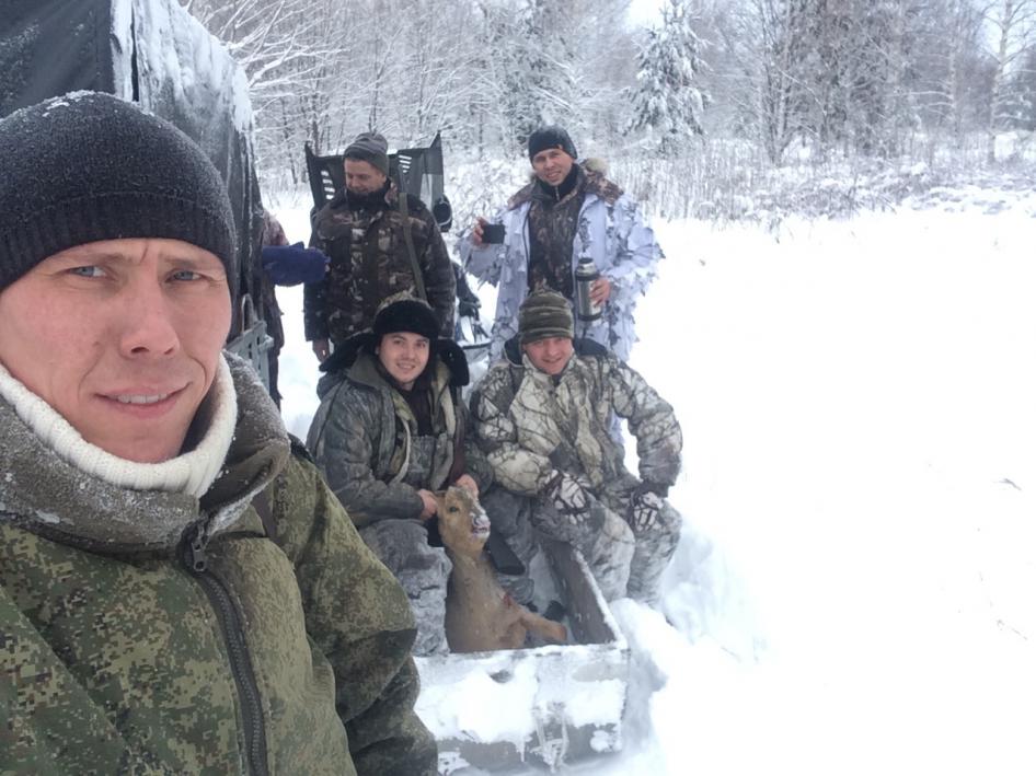 В субботу, ранним утречком погнали мы с коллективом из 5-ти человек реализовывать путевку на козу. Приехали на место. Поняли, что снегаааа по самый небалуй. В 8:30 пересели к егерю в УАЗ, и начали осуществлять план пробирания к обозначенным местам охоты. Все наши тщательные попытки пробиться к месту на машине оказались безрезультатны. В 10:00 было принято решение вернуться в поселок за снегоходом и обьехать с другой стороны. Урааа, к 11:00 все получилось, добрались. Пошел первый загон, но все оказалось тщетно. Было решено колок леса обрезать, расставили друзей на номера, я погнал в загон. Иду...ору...ХОП ХЕЙ ЛАЛАЛЕЙ...прошел метров 200 по глубокому следу в колке леса. Звонок. Все путевка реализована. Взят молодой козлик. Я оболдел. Выстрелов из тигра вообще не слышал, думаю вот это я разорался