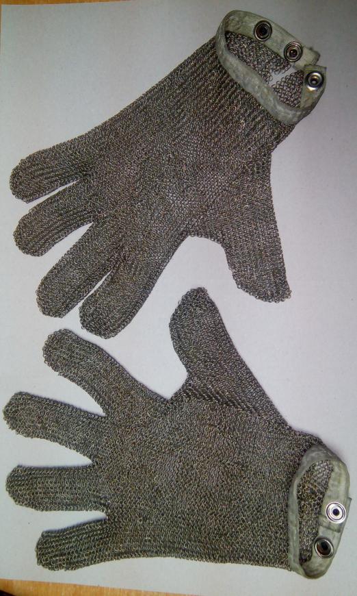 Появились в продаже вот такие кольчужные перчатки. Металл нержавейка, размеры от 10 до 12 (?). Надо мерить.