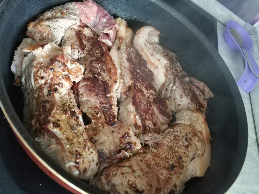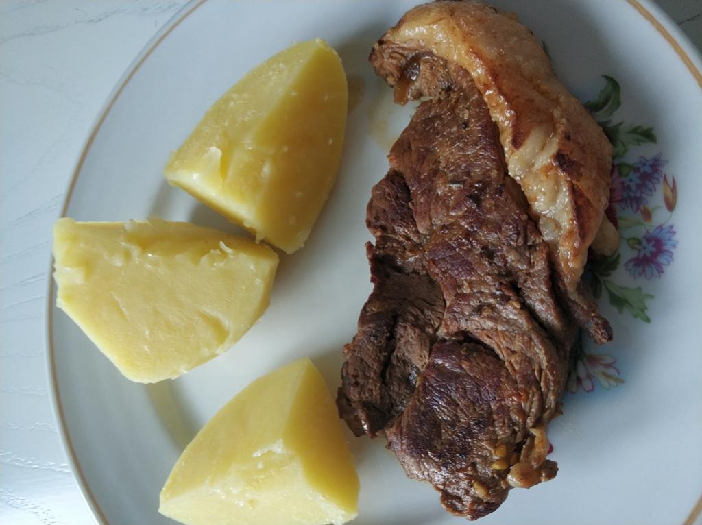 Очень нравится мне и семье свежатина приготовленная практически сразу... Ляжку кабана разделал и сразу красивый кусочек на обжарку... Ничего лишнего - перец и соль. Хорошо прожарил (люблю без крови) и с картошечкой по простому, по домашнему на стол! Сто грамм выпил, как положено!)))) Приятного аппетита!