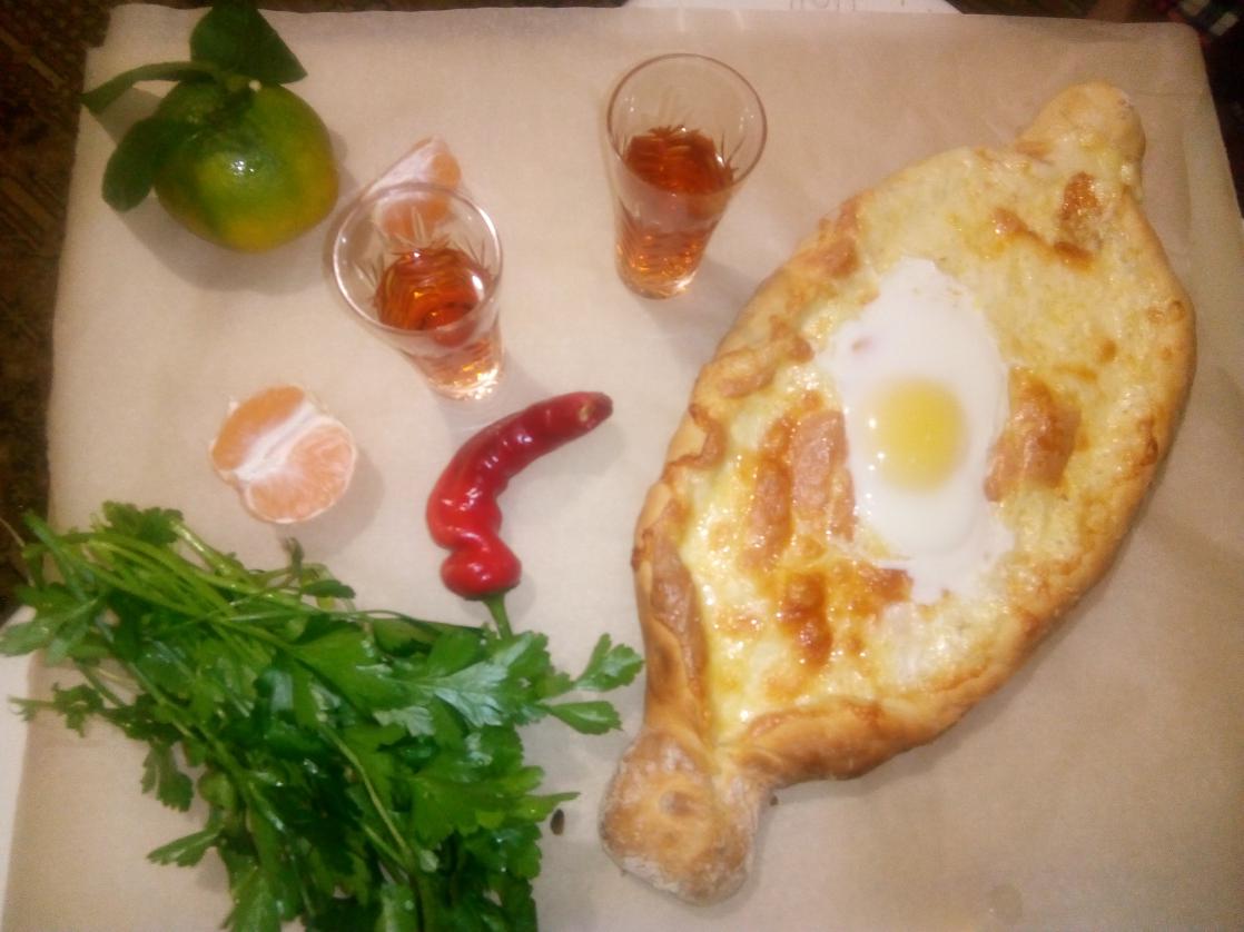 Вот была идея давнишняя. Хачапури!!! Да по Аджарски. Нельзя мучиться и поехал в магаз за мукой и брынзой. Замесил тесто, дрожжевое. Натер сыр на тёрке, пока тесто доходило. Раскатал форму, сыр внутрь, борта лодочкой, протвень и в духовку. 15 минут на максимуме, достал, отверстие в середине. Туда яйцо сырое. Ещё две минуты в духовке и на стол. Всем приятного аппетита и удачных охот!!!!