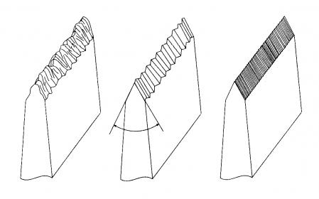 Грубая заточка "режет" хорошо но не долго. Получается микропила. Она надрывает мягкие ткани. По продуктам норм. Быстро и без заморочи. Ну или если у вас такой нож, который не жалко сточить до шила. Как только вы начнете работать по дереву, скажем, то микропила махом затупится, а вам придется немало удивляться. |