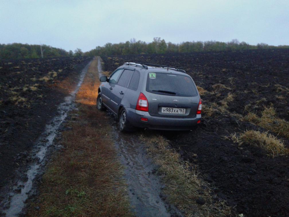 а история приключилась следующая. поехали на ПО. в залив усы.туда проехали отлично. а там внезапно дождик нагрянул.дороги полевые глина чернозем, машина а месте шлифует. дороги все распахали фермеры уе.ки.неужели нельзя оставить по пол метра с травой?даже в плотную к леску дорогу перепахали.чтоб у них там не росло ни чего на этих кусочках. в общем как бы мы не пытались выехать, как бы не толкали.чуть горка и все машина встает.пока травка ползет. один участок был без вариантов. с лева пашня с хорошей канавкой с права лес и как назло земляной вал. решили попробовать по другому.но не думали что там такая затяжная горка.машина шла хорошо в принципе зад придерживали.но потом участок с большим наклоном сделал свое дело.машину снесло. время первый час ночи. просидели там до начало девятого часа. дождь, дождь со снегом, +4 ветрище. мокрая одежда. на прозьбу о помощи откликнулся парень с группы в контакте,Взаимопомощь на дорогах (Тольятти) - Mayday. позвонил в 6 и сказал что через часа полтора подьедет. зад машины к утру просел в пашню до порогов. в общем протащил меня патриот через пашню с заблокированными задними колесами из за грязи. были моменты когда я думал что все, точно не выедем.он сдвал на зад , делал рывок и мы с трудом но начинали ехать и выехали. оказалось это не самое страшное и трудное. все было в переди . а в переди оказался хороший крутой подьем с оврага и почва глиняная.сам он заехал до половины я остался на подьеме в гору проехав метра 2. я даже не знаю кто б там меня вообще затащил. полез в багажник за топором чтоб срубить ветку и почистить задние колеса, и тут увидел что у меня лежит 50 метровый моток репшнура. соединили с 6 метровым тросом . патрик заехал в гору и что оказалось не так просто.ехал медленно но верно, ковыряя до сухого грунт.в буквальном смысле вспахивая почву. и даже увеличив трос и он был на верху, не сразу меня вытянул.в этот подьем заезжали где то час.