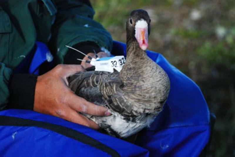 ну как отслеживают перемещение гуся? на них же типа какие то датчики стоят. так вот этот датчик стоит на нескольких, или на 1ом. так как если на нескольких, то стрелок бы было много. а тут как бы 1 гоняет туда сюда.