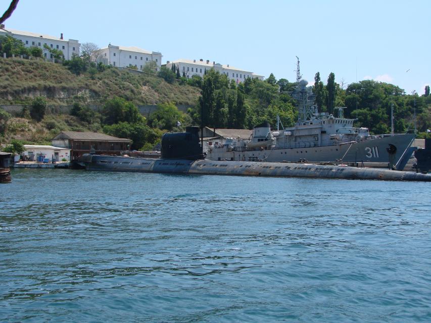 У причала плавучий госпиталь "Енисей". Фото сделано с Радиогорки от Михайловской Батареи.