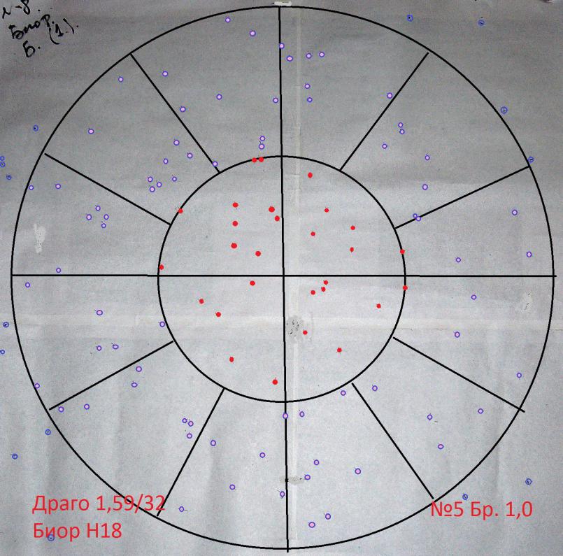 Сам знаешь, навески производились "баночные", так сказать первичные, от чего плясать. Поэтому как бы первый результат. Жаль что не забрали мишеньки с твоего Бекаса, для сравнения. Ну да ладно, в следующий раз...)) И так: 1. Гильза Фиокки, сх-2000, Драго 1,62г., П/К Феттер Н14, дробь №5 34г., звезда, подкрутка Гаеп №4. 2. Гильза Шеддит\ Феттер\РС (низкий донный пыж) сх-2000, Драго 1,58г., Биор от Феттер Н18, дробь №5, 32г., звезда, подкрутка Гаеп №4. Сборка ровная, амор. на П/К и Биоре, не передавлены. |