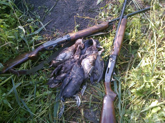 Открылся как и много лет подряд шикарно.Утки в угодьях тьма!В нашем маленьком коллективе появился новичок.Сколько он сегодня пострелял!Как пару коробок расстрелял,спрашивает меня,а почему подход к озеру делаем вместе,а вы не стреляете?Отвечаю: там куча лысни и чемг,я их не ем,поэтому и не стреляю.Начал приглядываться.В итоге за утро добыто достаточное количество утки и куропатки.90% были розданы форумчанам,которые на открытие не поехали по ряду причин.Себе оставил чуток.Всех с праздником!