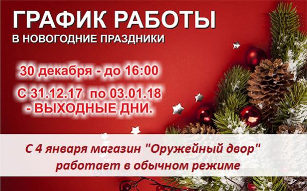 Уважаемые участники форума, график работы магазина "Оружейный двор" в новогодние праздники: