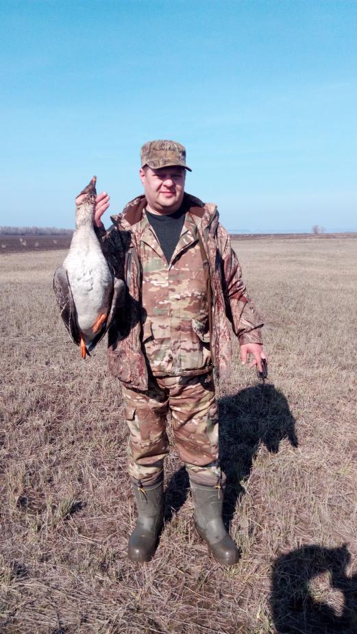 Про подготовку не буду, времени было в обрез, угодья новые, поэтому тоже не совсем по классике было. Нашли в озимых лужу, правда с кустиками, а гусь их не любит: Сделали скрадок, бросили засидки, расставили чучела: Утрянка!!! как мы ее ждали. В итоге было все: и налеты и промахи и огрехи в манении, новые уроки по маскировке и ее недостатках (решил четко для себя -ПОКУПАЮ ЗАСИДКУ лежачую), все-таки без дичи не остался: Было пару нежданчиков: Как лет прикратился, нужно было выпить за добычу, но закон -есть закон , поэтому по чуть/чуть -охотничья мера (рюмку не взяли): По три "патрончика" и усе. В общем, все что ждали от открытия-было. И встреча со старыми товарищами, и охота и добыча и , и мулян: и гусиный плов: и квадрик утонувший в озимых и грязнющие тачки: и разговоры у костра: в общем и целом охота состоялась, дичи много не пострадало, все довольны и сделаны работы над ошибками (коих тоже было много). Очень расстраивает интеллектуальный уровень некоторых персонажей, которым как то дали в руки оружие и от которых не спрятаться, не скрыться. Они один хер отсалютуют из посадок по стайкам, которые ты пытаешься наманить на свои полночи выставляемые чучела. Всех отличившихся душевно поздравляю с полем!!! и в будущем желаю "Ни пуха, ни пера"!!!