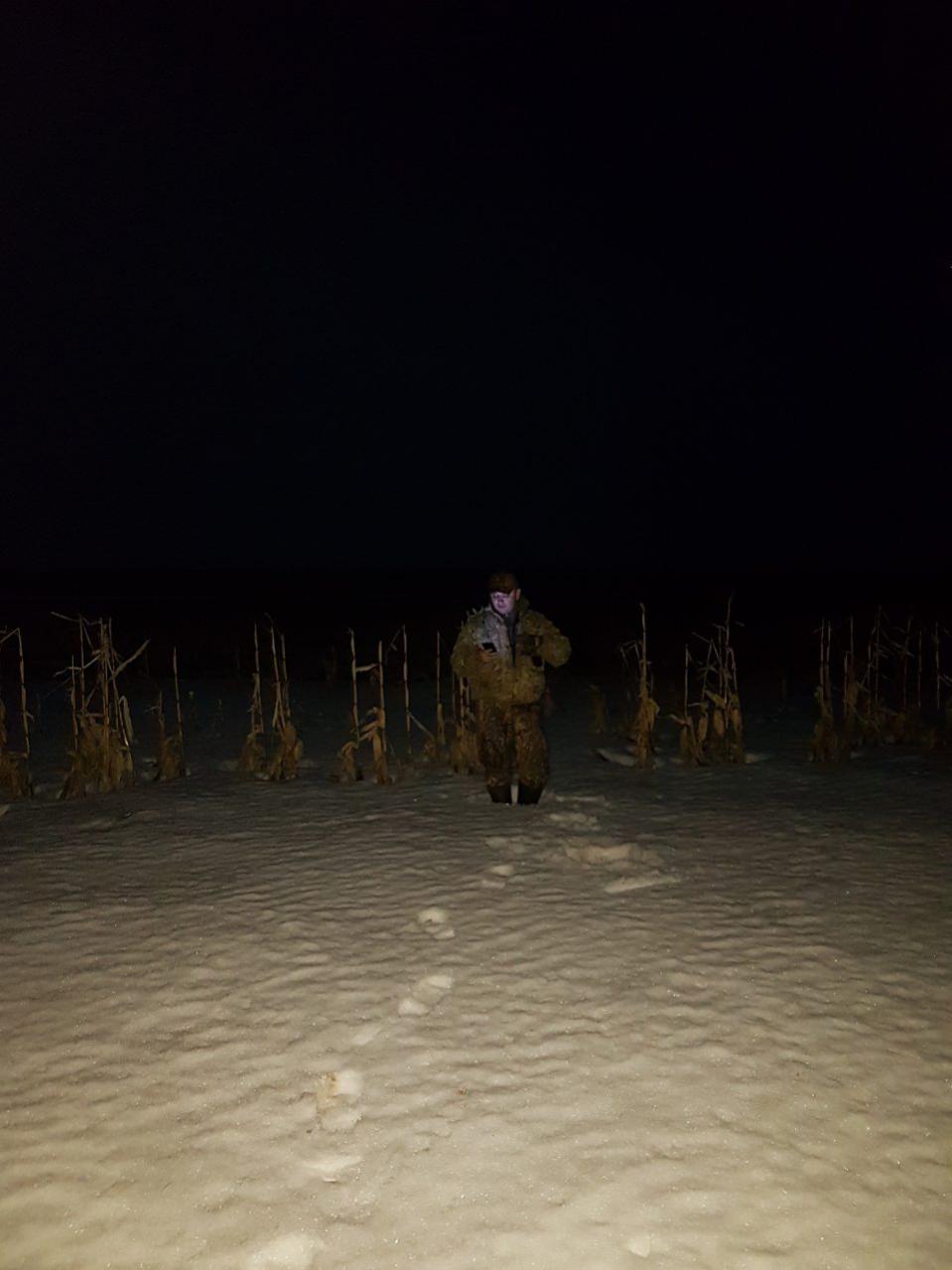 А видели все это в ходе разведки по району. Ну вообщем по порядку тоже Приехали в пятницу и сначала поездили посмотрели места.В прошлогоднее место проехать не смогли.Ну и вообщем незря ездили-нашли полоску кукурузы и решили на ней и остановиться.Пошли выставлять чучела в поле мрак вода,грязи по уши-ноги как колотушки по 5 кило на каждой грязи.Ушли подальше от дороги на 1,5 км-и это было верное решение!Утром в 3:30 выдвинулись на место. С утра Взяли одного белолобика. Как раз на мулян!)Маскировались в снежице в масхалатах. На следующий день ещё четырёх добыли.Охота выдалась очень трудовая.Повезло думаю потому-что далеко в поле ушли. Последний раз редактировалось gsgsam; 10.04.2017 в 19:30. |