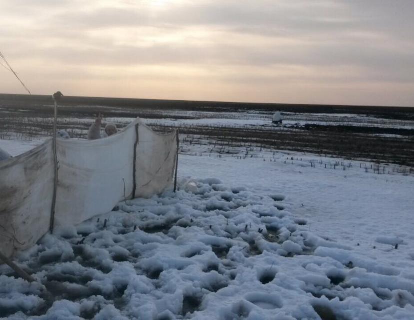 . И это не могло не расстраивать.Принимаем решение разместиться на кукурузном поле, примеченное с зимы. Нашли там кучку снега, сделали скрадок. Рассвет, ждем. Первая стая появилась на горизонте часов в шесть. Ну хоть дичь появилась).Прямо в лоб летит пара, не пойму кто, молча летят. И только подлетев метров на 150, слышу клю-клю. Я им в ответ, они мне... Заходят на вираж, закрылки, шасси, прямиком в чучела. "Бьём!". И оба камнем... Был налет еще пары и небольшой стайки- приземлили еще двух белолобых. Итог четыре на черверых. Гуся немного было, на манки внимания ноль, пер на юг, летел с 7 до 12 часов. Гусь падал на соседнее поле. Попробовали на вечерку туда перебраться, но к вечеру он оттуда свалил. Два налета было, высоковато. Только утки остались на поле. При таком раскладе считаю, что охота состоялась! Всех открывшихся С ПОЛЕМ! Тем, кому еще предстоит- НИ ПУХА НИ ПЕРА!