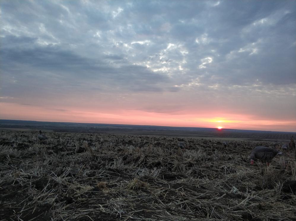 В пятницу вечером 19.00 прошли над полем 2 не больших стайки. Настроение улучшилось думал весь гусь свалил и зря приехали. В субботу с утра прям таки весело гусик летал во всех направлениях. Ну и стрельба из посадок велась уххх какая. Одну партию удалось снизить метров на 80 и почуяв пале во свалили. Короче солнце делает нас очень заметнами на пашне. В суботу решили подкопаться на воскресенье утрянку. В итоге смена ветра и на утра лета 1 дохлая стайка за предельной дистанции.Напарники ушли в лагерь в 8.00. Я остался до 10.00 и болт.Ветер с пары вами делал свое дело. Гуся не было..... Вот такое открытие...У ково лучше получилось? Что все молчат.