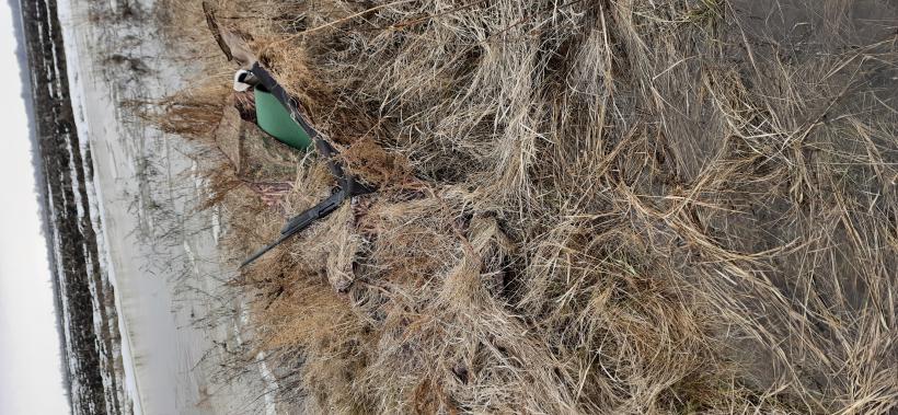 Среда...С утра морозец небольшой был,один взят...Вернулись,позавтракали..Потеплело,солнышко вода пошла,скрадки поплыли...Решили поменять место..Километрах в трех большая лужа на поле,сидит там...тыщщи))решили сходить проверить,может где есть местечко притулиться...Вышли в обед,дошли вечером)Гусь снялся,еще двоих забрали