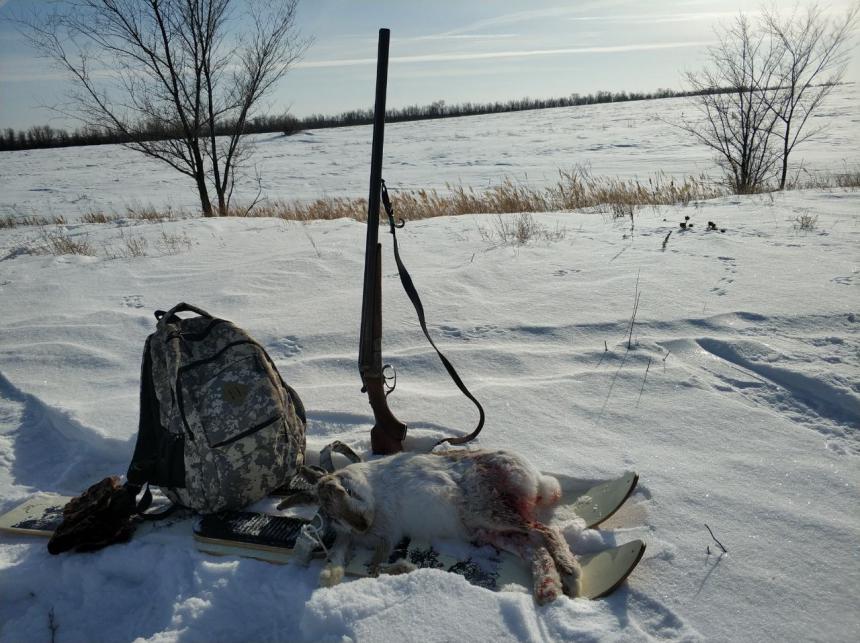 После чего двинули в обратную сторону к машине. Немного отойдя от маршрута наткнулся на свежий след. Но косой меня обманул. Встал на старый лыжный след и скинулся в густую траву где собственно я скидку и не увидел. Пока смотрел в обратном направлении он встал в кустах и был замечен только в ста метрах от меня уходящим далеко в посадку. Оба зайца подпустили меня на 20 шагов. 1-1 во вчерашнем выезде. Всем ни пуха.