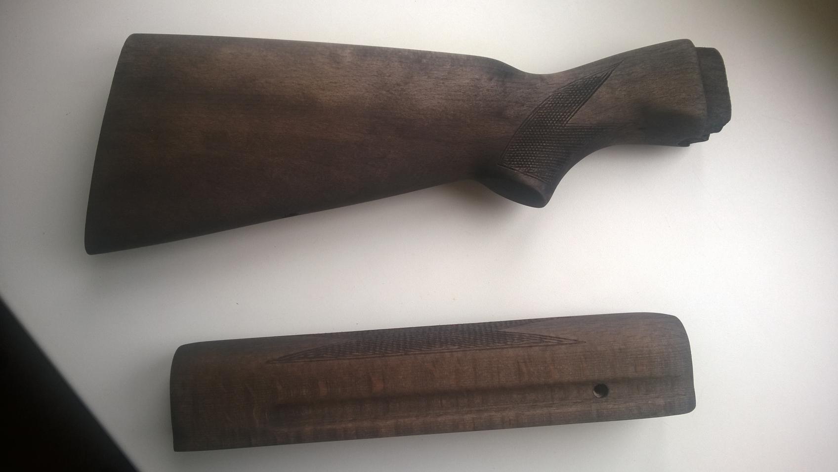 решив как обычно сэкономить отрезав от трешки верх засунув туда свои деревяшки, понятно что целиком они там не поместились, залил по максимуму ацетон. часов через восемь перевернул дерево, еще через восемь я имел на выходе в общем то чистое дерево, но с темными полосами по границе уровня ацетона. пришлось докупать ацетон, искать тару куда поместится приклад, и погружать полностью. полосы в общем исчезли. Погружал в ацетон, для того чтобы убрать темные пятна на дереве, отбеливать его не хотел, почему-то отложилось что совсем отбеливать не стоит, почему не помню, может я не прав. Морилки нанес аж 4 слоя. где-то тоже напортачил наверно с процессом, так как имеются неравномерности с морением. может когда влажной тряпкой протирал между морением, может еще че. ну да ладно. Не найдя льняной олифы, купил с горяча шафтола. с горяча, потому что особо не понял, зачем он мне. наверно думаю что он быстрее высохнет и можно будет собрать ружье, а уж потом не спеша пропитать льняным маслом. Наносить его попробовал ватным диском, затем тряпочкой, но цеплялись ворсинки к дереву (конечно же я все полировал), плюнув втер все рукой) В общем, если не придираться, считаю получилось не плохо. |