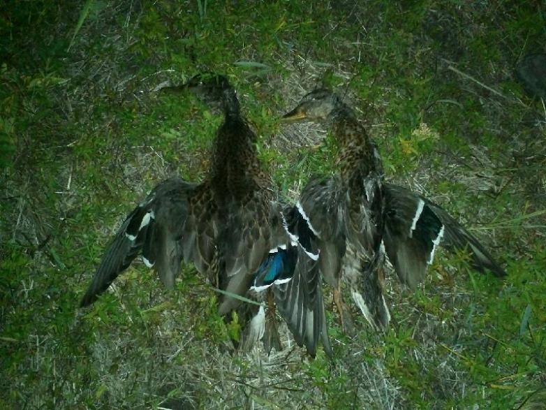 Сегодня вечерка удалась! После работы рванул и уже в 7 раставлял чучела. Утка пошла уже почти по темному, около восьми. Было 3 налета в течении 30 минут и все дальше тишина. Взял двух кряковых. Утка линяет. Тот что побольше на спине лысый и весь в колтышах, маховые перья видно только выросли.