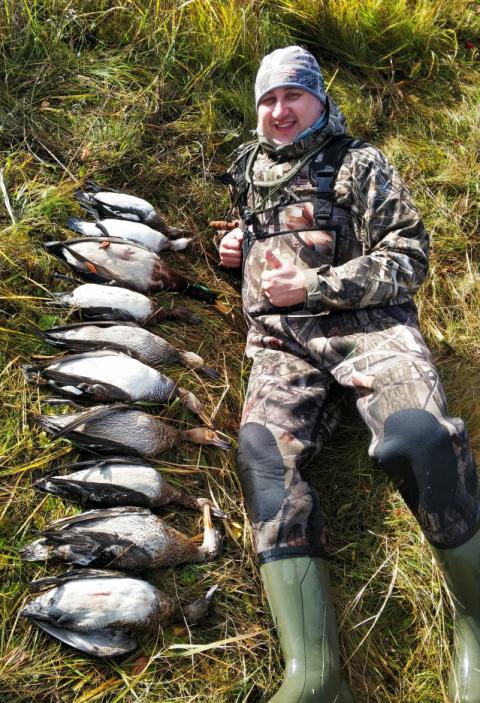 Мы с Ваней тоже выезжали на выхи поозоровать...))) Утки нет)))) только если кряковой, остальной как конь на..б!))) Шикарная охота! Фото не буду все выкладывать, а то Ваня жесткий чел, может и леща дать... Короче место уже сразу определили, но лету не было часа три. Бакланами, воронами накормили всех орлов в округе ..., уж подумывали собираться, ибо одну уточку увидели высоко, как не горланили в манки всех мастей... Но что то все таки произошло и несмотря на пол лодки воды (очень сильный ветер и дождик местами), несмотря на постоянный лет черных этих... нам удалось выполнить норму и в этом году наконец то поохотить с чучелами, классически! Результат хорош, почти всех видов утков собрали, кряквы только нет почти... Как Ваня манит, умолчу... Короче утка полетела к 8-00.