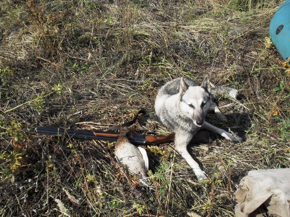 Два дня был в угодьяx.Степь горит,дождя надо.Такие перспективные места по зайцу выгорели.очень мало перепелок,а куры есть.Стрелял 8 Феттер контейнер(короткий пулевой ствол 510мм).