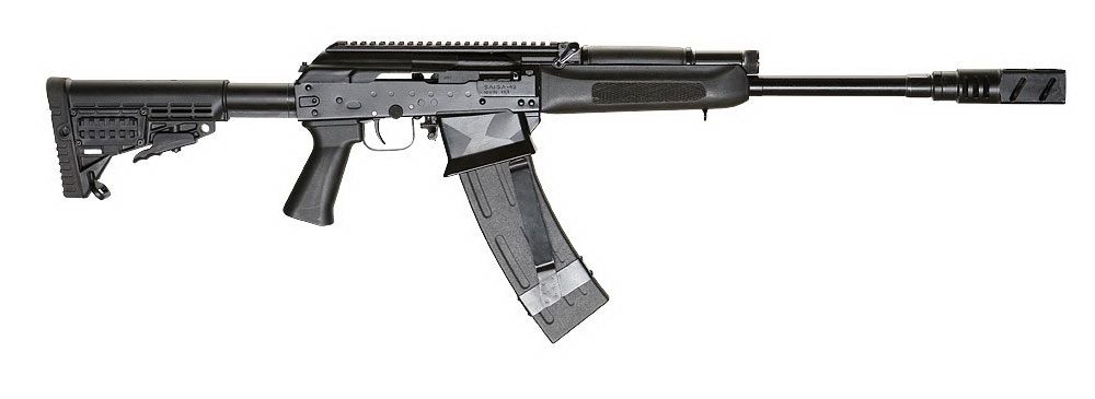 Основные особенности данного оружия: - модернизированный газовый двигатель для надежной работы на патронах с малыми навесками дроби и, соответственно, с уменьшенной отдачей - дульный-тормоз компенсатор Ильина третьего поколения - система быстрого отделения магазина - планка “пикатини” на верхней части ствольной коробки для установки коллиматорного прицела - кнопочный предохранитель - рукоятки взведения с правой и левой стороны |