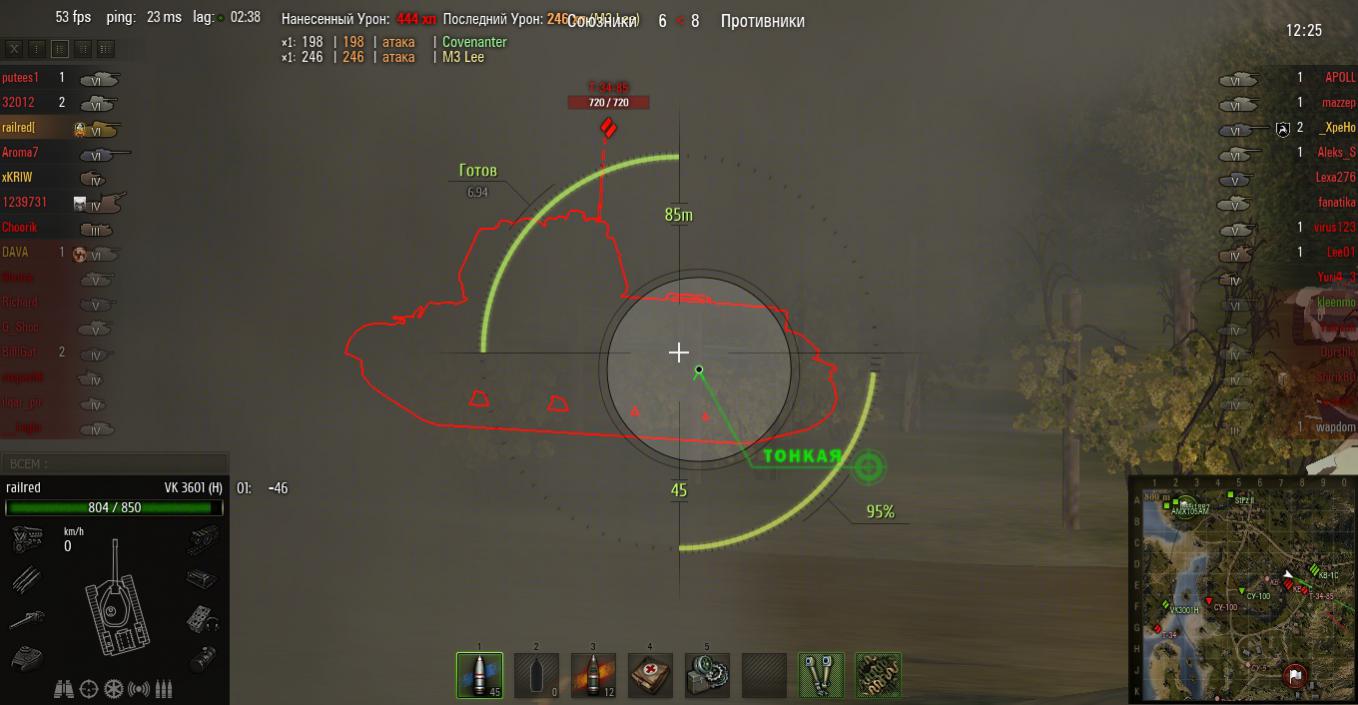 сразу поясню 5 прямых попаданий остальные сплэшем( потому ,что противник ныкался за камнями). Последний раз редактировалось sergeyst1; 19.04.2013 в 09:58. |